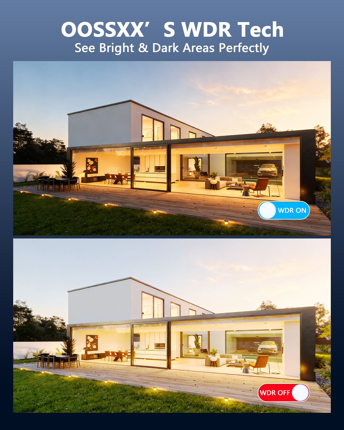 - {Super Visión Nocturna} Adéntrate en una nueva era de claridad con las cámaras para exteriores OOSSXX. Equipadas con un sensor de 5 MP de alta resolución y un filtro de corte IR, esta cámara de seguridad ofrece imágenes inigualables de día y de noche. Disfruta de un alcance de visión nocturna de 24 metros y un amplio ángulo de visión de 130°, lo que garantiza una cobertura completa las 24 horas.