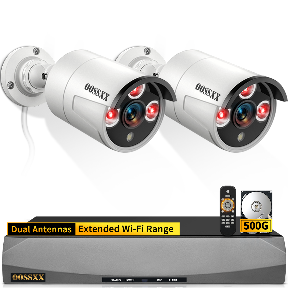 Sistema de cámaras de seguridad con cable para exteriores OOSSXX, cámaras de vigilancia POE de 5 MP con audio para la seguridad del hogar.