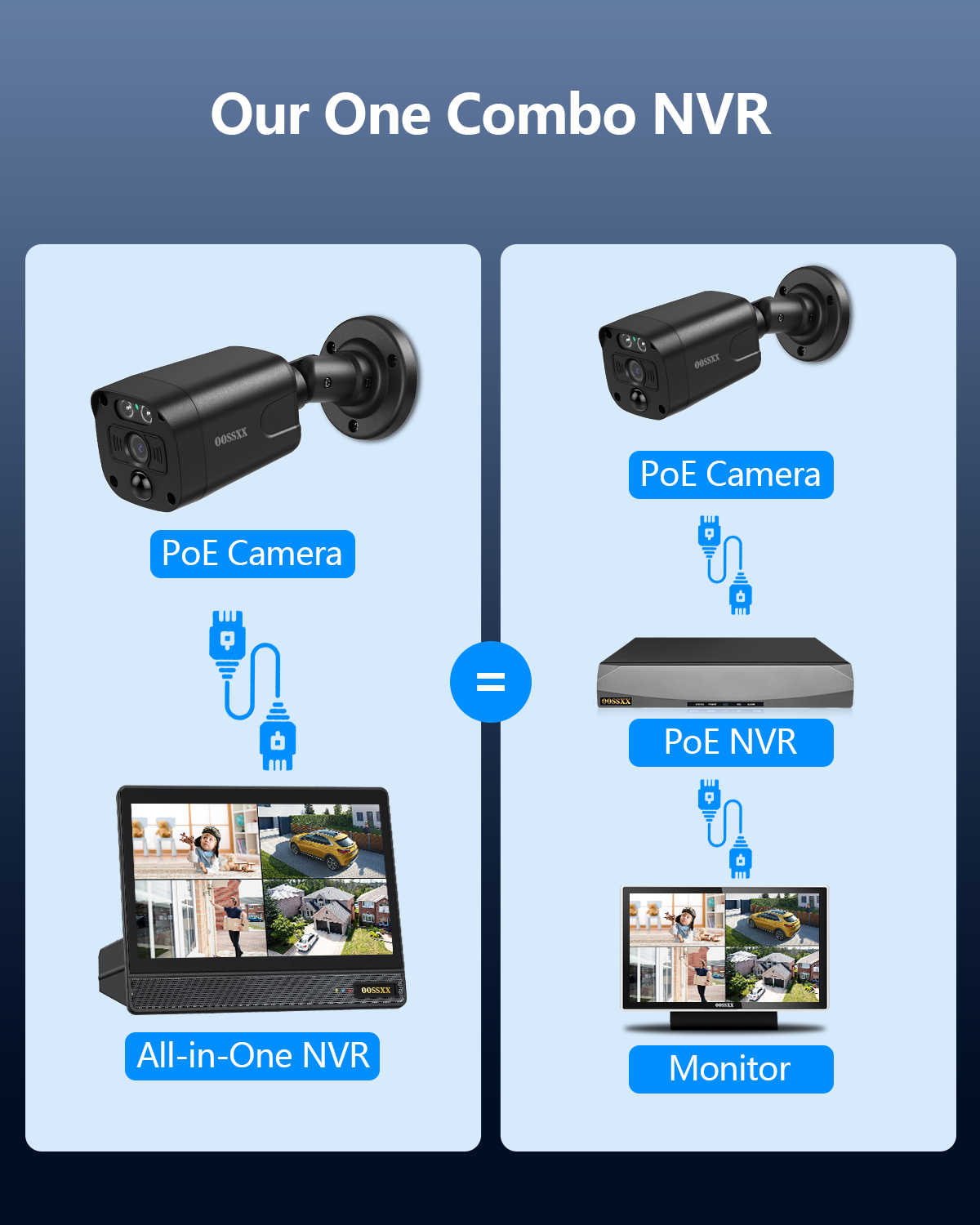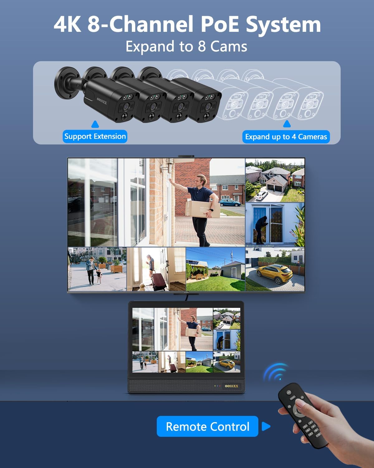 - {4K Ultra HD} OOSSXX 4K Ultra HD (8MP, 3840 × 2160) 4K security camera delivers almost four times the clarity of 1080p. Our surveillance cameras for home security provides users a vivid display, even when you digitally zoom in. 80 feet IR-LED night vision camera automatically activates infrared mode in dark areas.