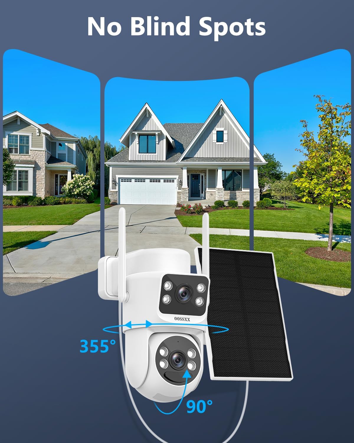OOSSXX (2-Way Audio & 100% Wire-Free Solar Security Cameras Wireless Outdoor, 2.5K Dual Lens PTZ 2.4G/5G WiFi Camera Solar Battery Powered, Color Night Version, Auto Tracking