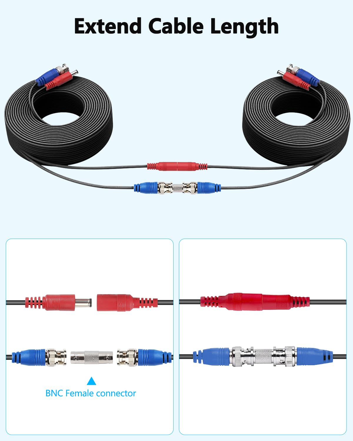 OOSSXX Video & Power Cable Outdoor Wired Surveillance Camera All-in-One Cables BNC Extension Cable for CCTV Security Cameras DVR System with BNC Connectors and RCA Adapters