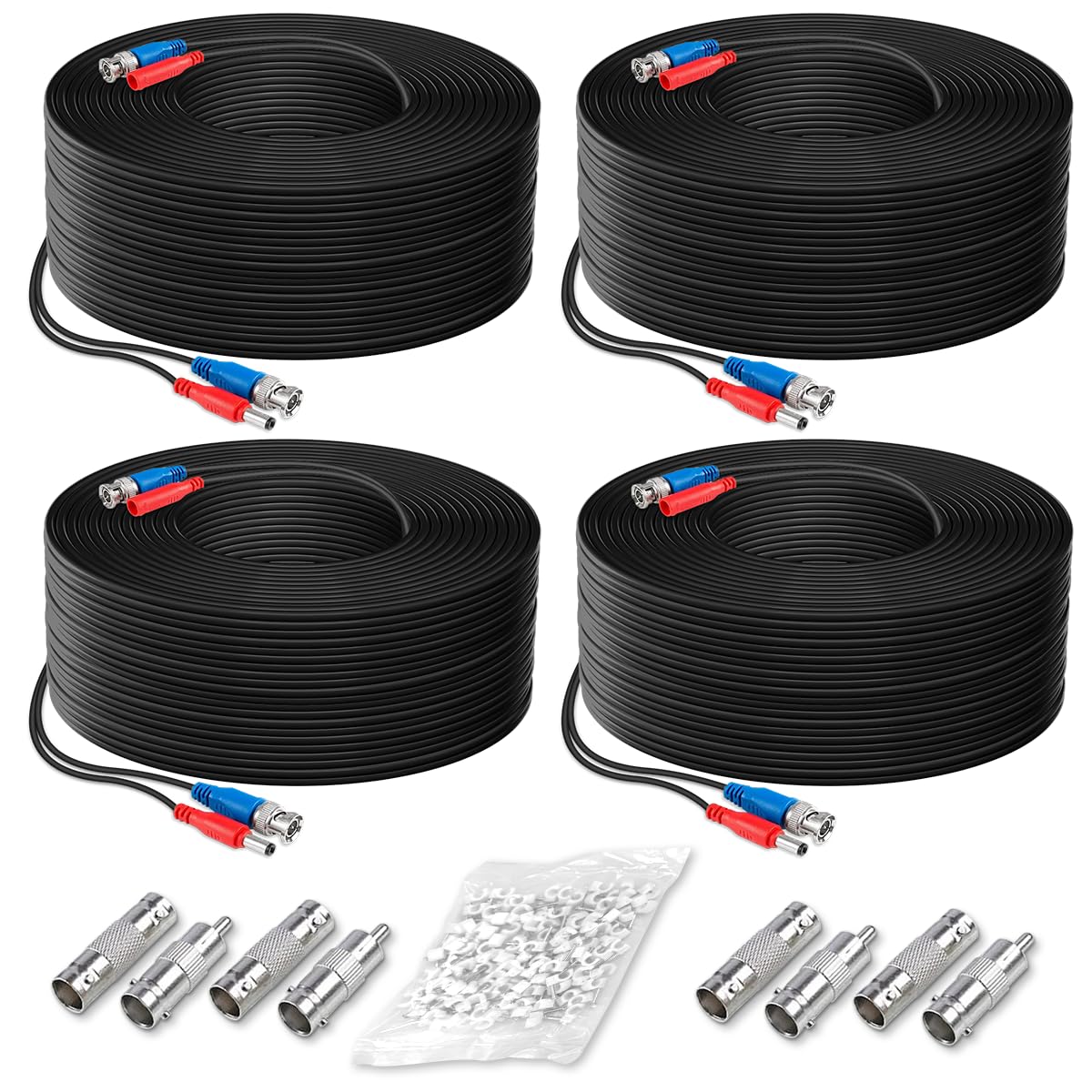 OOSSXX (4×100 Feet Video Power Cable BNC Extension Outdoor Wired Surveillance Camera All-in-One Cables for CCTV Security Cameras DVR System with 4xBNC Connectors and 4xRCA Adapters Black,4pcs